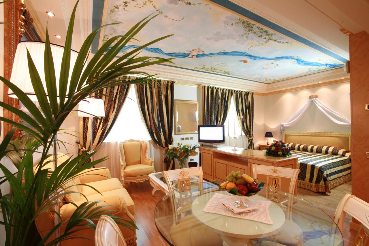 Esclusiva e raffinata, pensata per chi desidera il massimo del lusso e dell’eleganza.- Divani e tavolo nella zona soggiorno